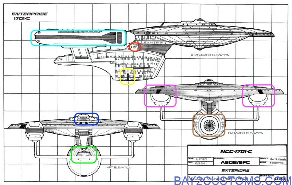 1. TURQOUISE – The warp nacelles for sure! over the full length, should be an LED stripe with Nano-pixels